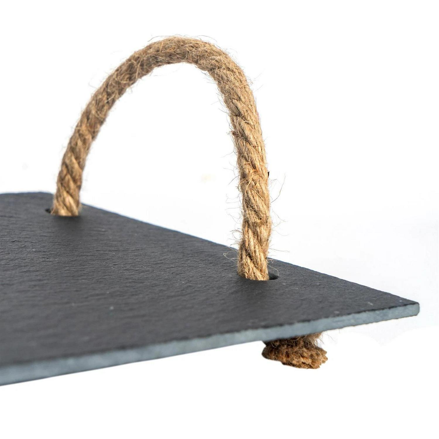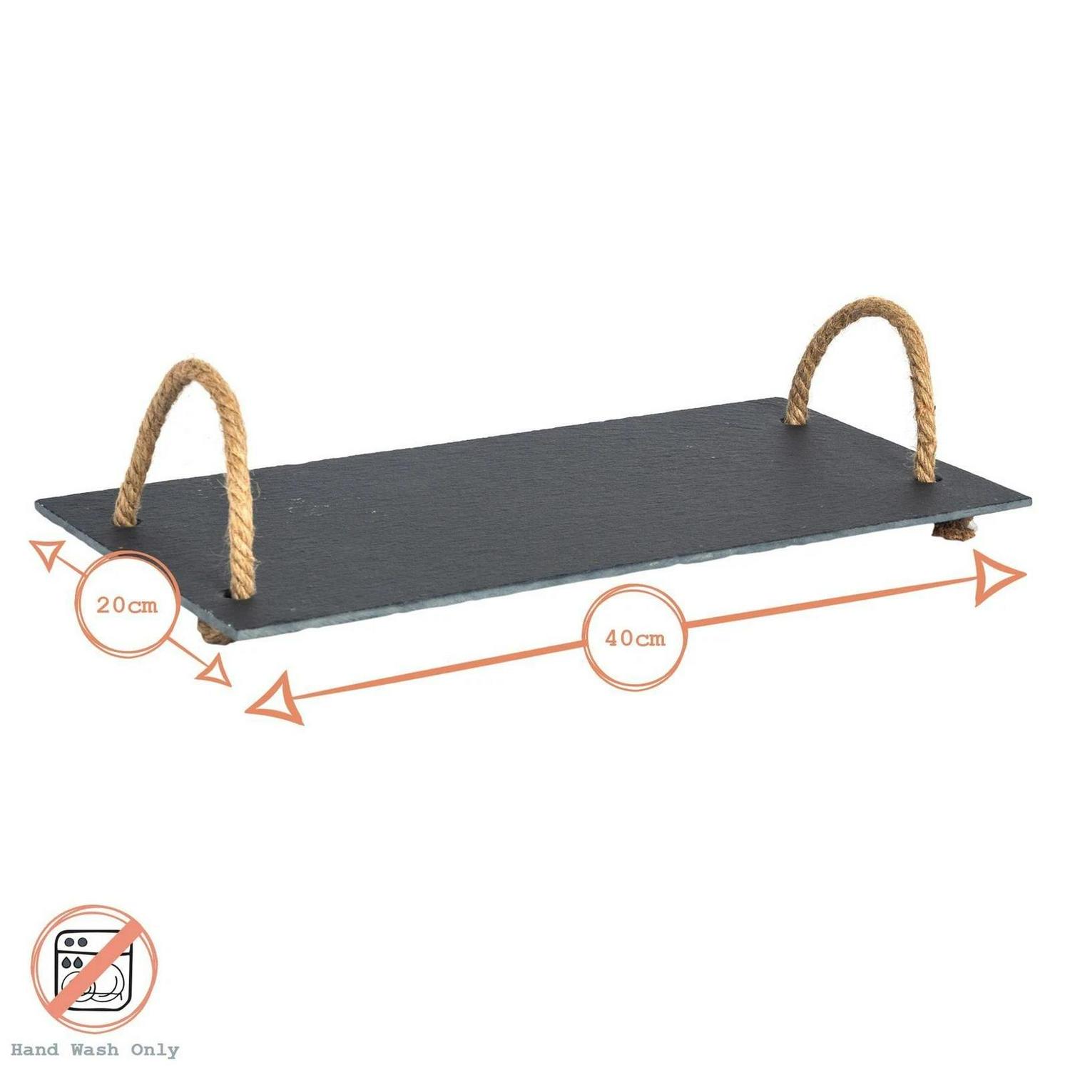 Slate Serving Tray and Rope Handles Rustic Dining Table Setting 40 x 20cm Grey
