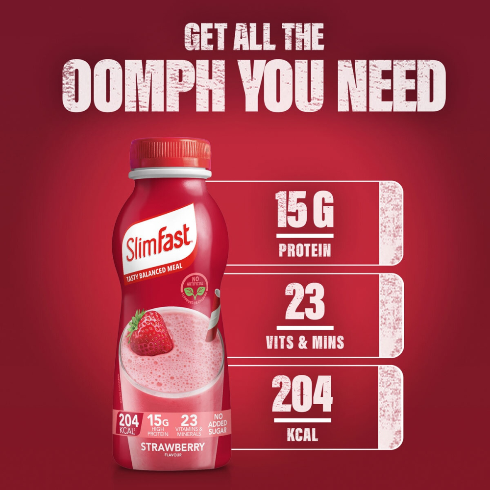Achieve your weight management goals effortlessly with Slimfast Strawberry Shakes, a convenient 6-pack of 325ml ready-to-drink meal replacements. Each delicious shake is fortified with 15g of hunger-fighting protein and 23 essential vitamins and minerals, offering balanced nutrition for a busy lifestyle.