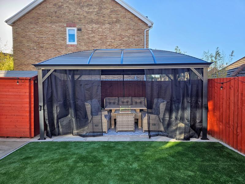 Excellent value! Perfect for our garden, to cover the hot tub. Easy to assemble (for 2 people). Finishes the garden off perfectly.