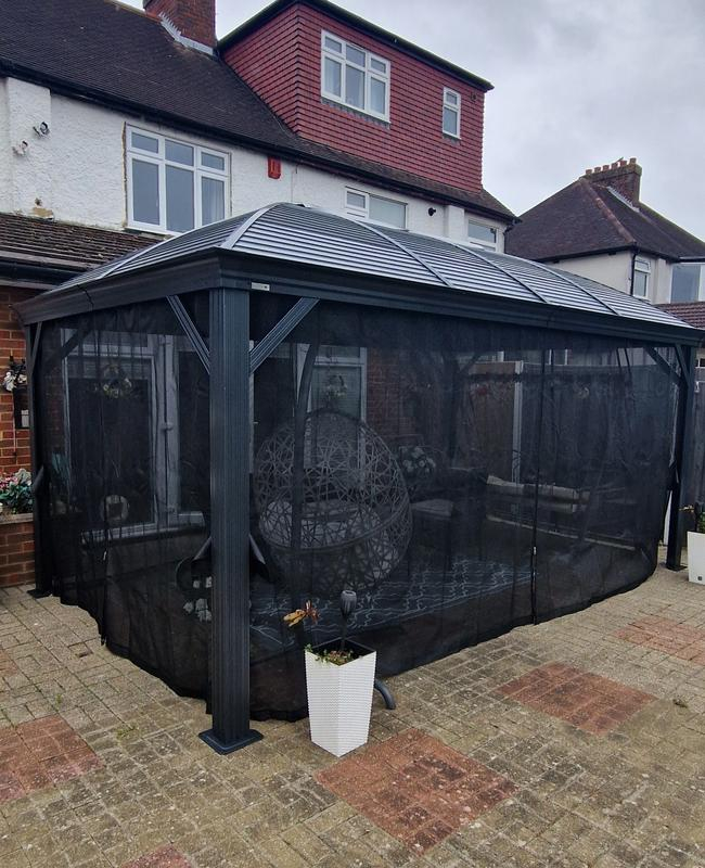 Unbelievably classy item. High quality beautiful eye catching product that enables toy shelter from the sun, rain and cold in the winter (with a garden heater). Hard to put up I had to pay £300 to have it put up. If thinkassemble.co.uk arranged an installer it would be better for customers
