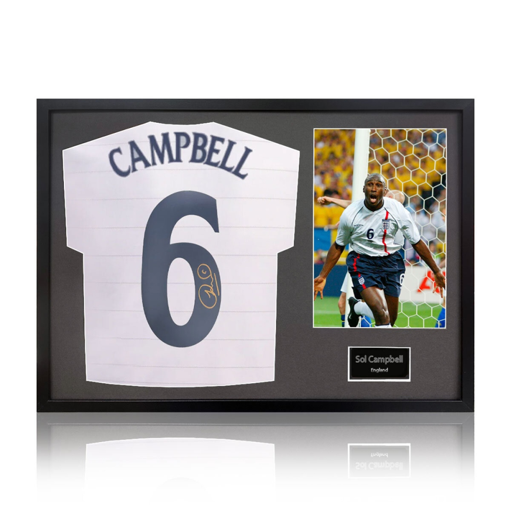 Own a Piece of Football History: Sol Campbell Signed & Framed England Shirt – Authentic Memorabilia for Dedicated Fans