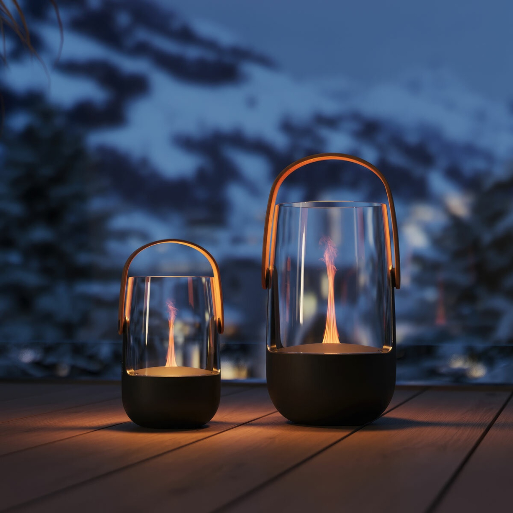 • 2 Stadler Form Aroma Diffusers with a realistic Flame Effect in two convenient sizes.