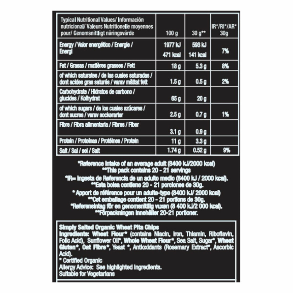 - Organic Pita Chips: Made from real, organic pita bread for superior quality and flavor.