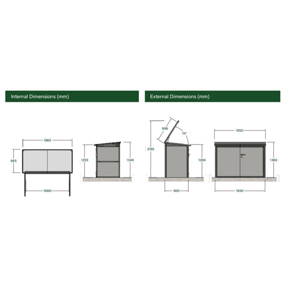 • Massive 2,018-Litre capacity, perfect for storing up to three 240-litre wheelie bins.