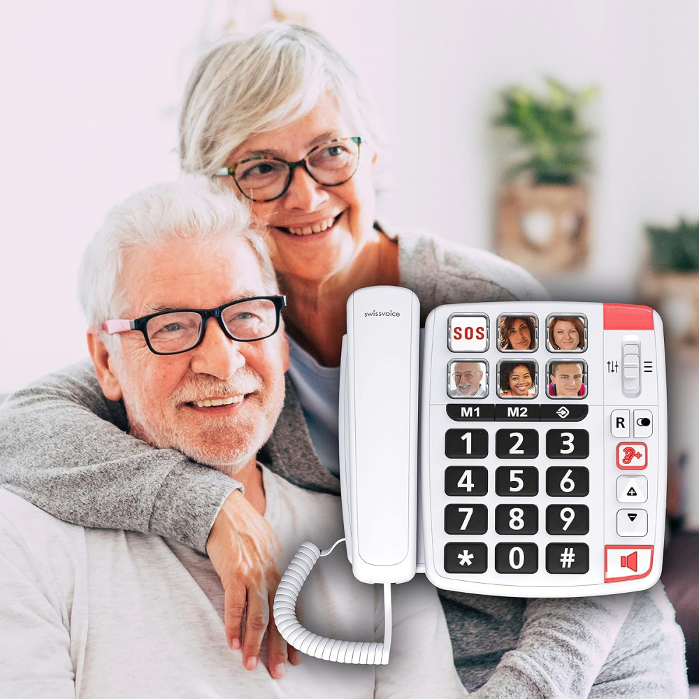 Experience unmatched clarity and simplicity with the SWISSVOICE Xtra 1110 Corded Telephone, expertly designed for seniors and those with hearing or vision challenges. This high-contrast white landline features an XXL design with large, spaced keys for effortless dialing, making accidental presses a thing of the past. Never miss an important call again thanks to the extra loud ringer, adjustable up to 85dB, and a brightly illuminated ringer indicator. Enhance your conversation quality instantly with the dedicated Audio Boost button, increasing volume up to an impressive 30dB, ensuring every word is heard clearly. Fully compatible with hearing aids, the Xtra 1110 offers a personalized listening experience with its equalizer slider (bass, treble, or normal profiles). For ultimate convenience, quickly connect with loved ones using the 6 photo memory keys for one-touch dialing. The integrated hands-free speakerphone function allows for easy group listening or multitasking. Trust the Swissvoice expertise for a reliable, inclusive, and efficient communication solution designed for daily life.