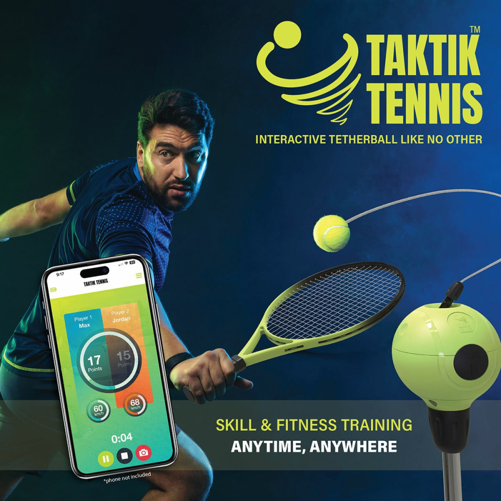 The revolutionary TAKTIK TENNIS Interactive Tetherball Kit is the ultimate portable training solution, allowing players of all levels to dramatically improve hand-eye coordination and hitting power without a court or partner. This all-in-one system includes two racquets and integrates with a free smart app to measure real-time hit speed and track performance on a competitive leaderboard. Perfect for skill development in your garden, driveway, or park, this kit offers high-intensity tennis practice anywhere.