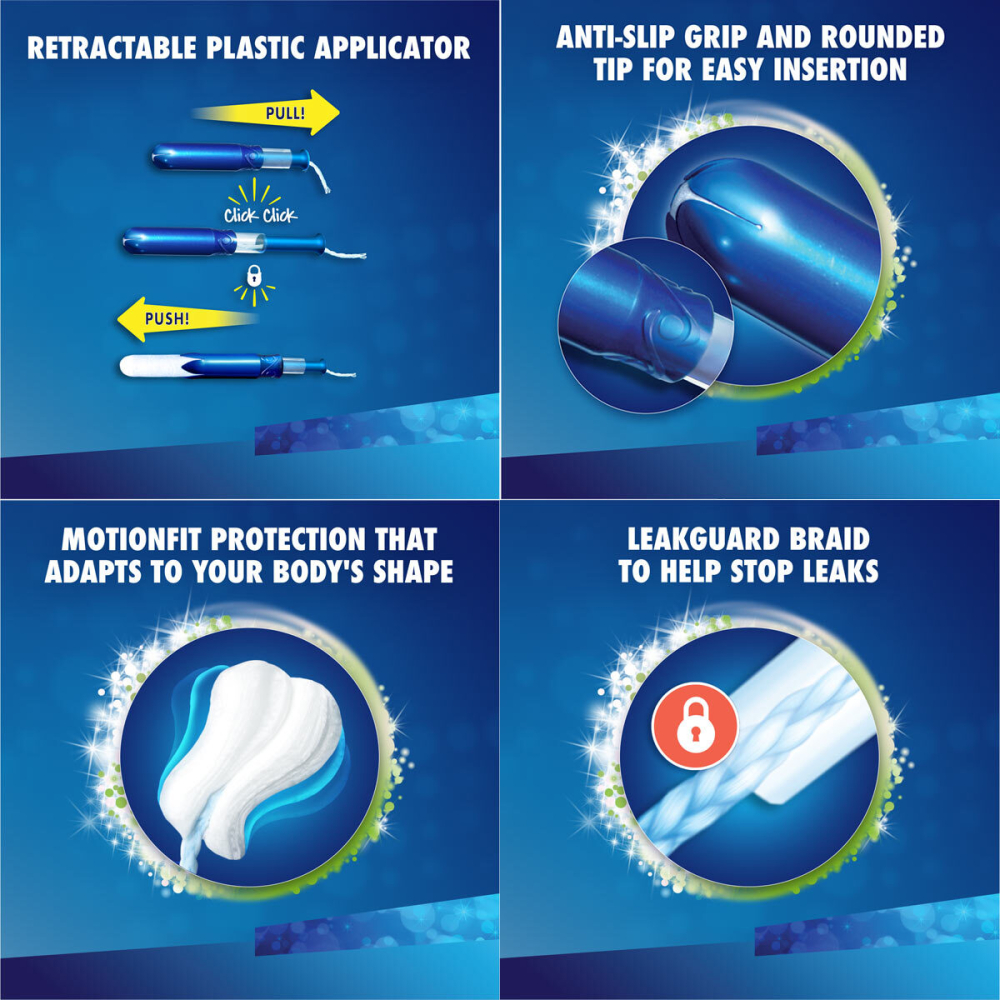 - Tampax MotionFit Technology: Expands gently to conform to your body shape, maximizing leak prevention.