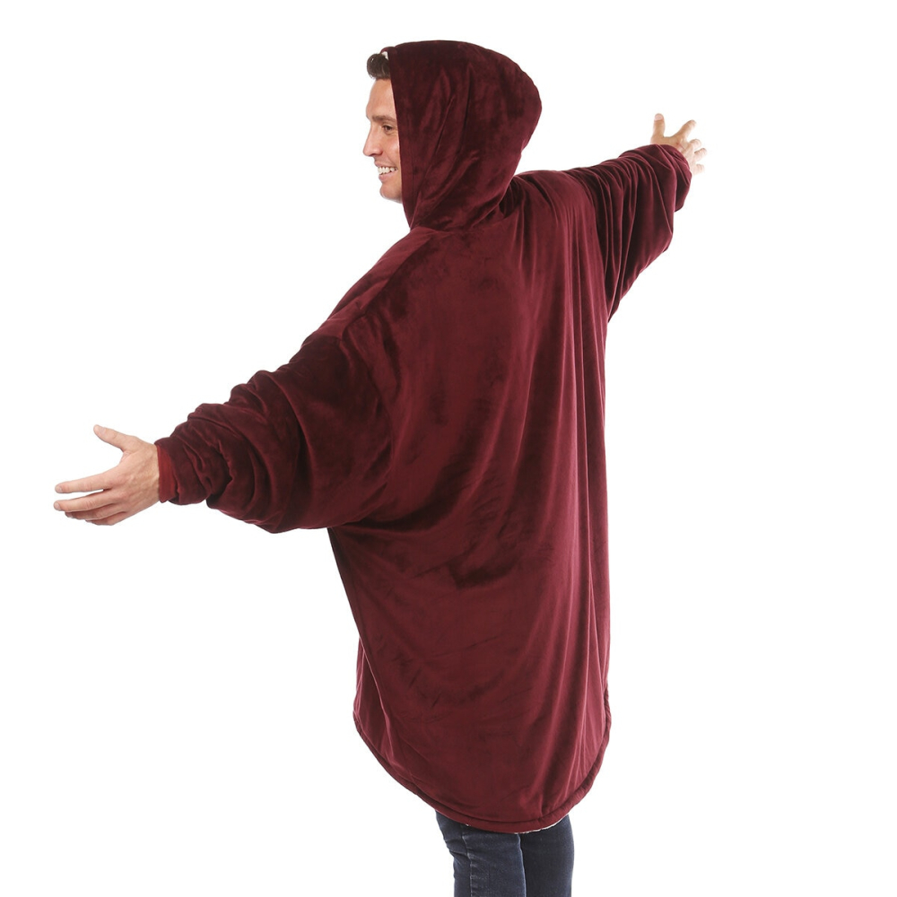 Experience the ultimate in cozy comfort and hands-free warmth with The Comfy® Original Wearable Blanket in Navy. This revolutionary, oversized hooded blanket sweatshirt is designed to keep you snug from head to toe, making it perfect for lounging at home, working, reading, or even enjoying outdoor events. Made with luxuriously soft, high-quality Sherpa lining on the inside and ultra-plush microfiber on the outside, this one-size-fits-all giant blanket hoodie replaces traditional throws. The Comfy® Original is the perfect gift for anyone who values comfort, offering an instant, portable embrace of warmth and style. Transform chilly nights and lazy weekends into a premium comfort experience with this viral sensation, now available in a sleek Navy finish.
