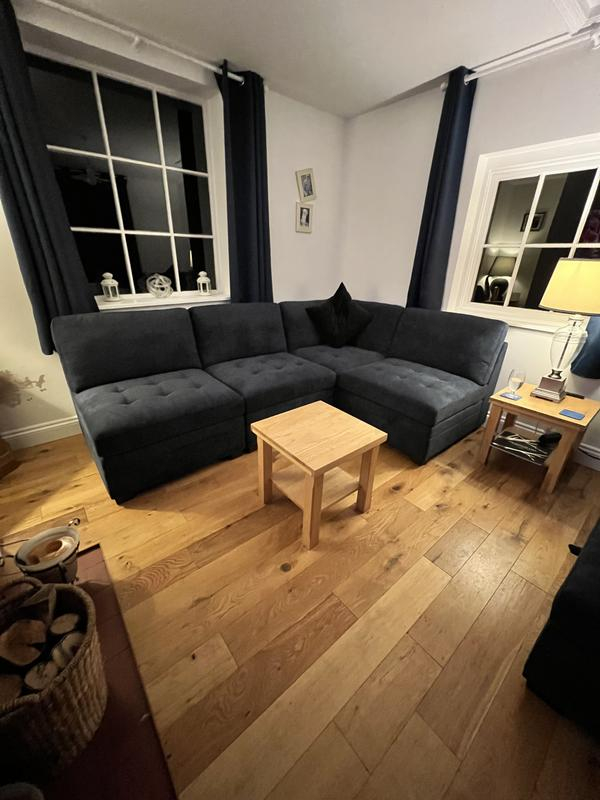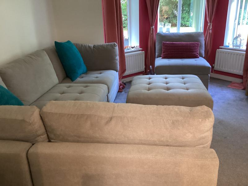 This sofa is excellent quality and value for money. I have enjoyed moving the modular pieces around to find the best fit for my living room. We’ve already had a spill on the sofa and it was easy to clean up and no sign of a stain remaining on the fabric.