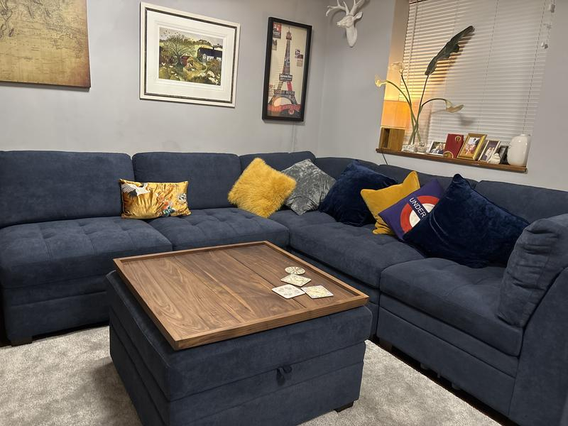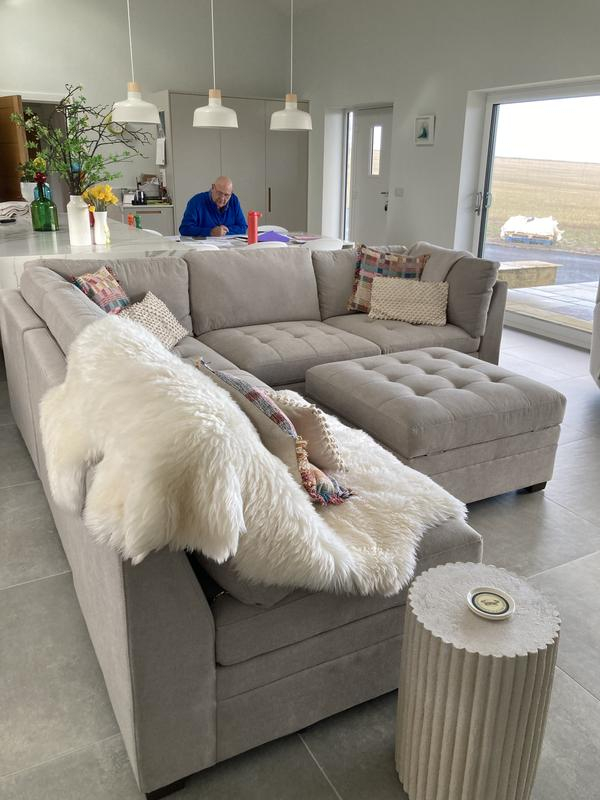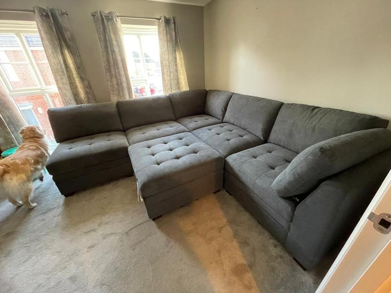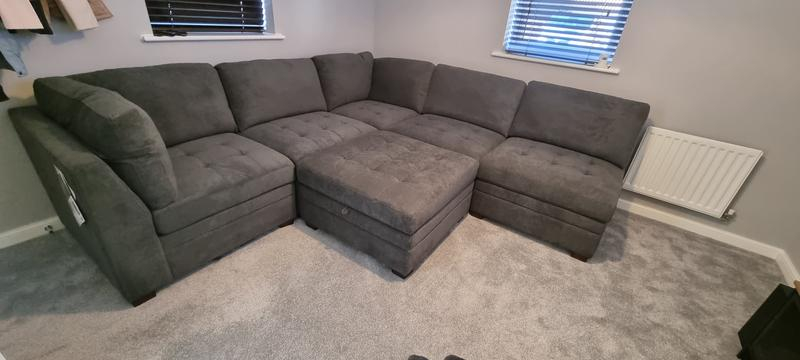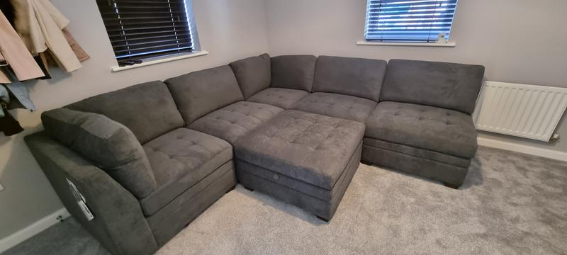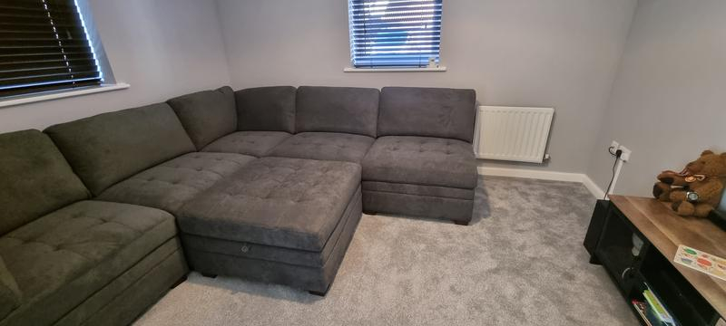 We had been looking for a new sofa for a while and agreed that it would wait until we both saw one we liked ,walked into thinkassemble.co.uk and fell in love with this corner sofa which has the added advantage of several different set up arrangements to suite your needs as well as the storage under the puffet, we ordered it with the notice of 20 days delivery but were very happy when it arrived in just 7 days, now had it for 3 months and it is unbelievable, very comfortable and spacious for weather you want to laze around or have family to visit , the actual fabric is very high quality, to sum it up it’s great value, top quality and well worth the price,