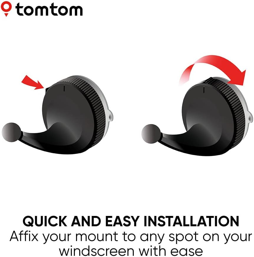 Bought to replace the mount that came with my Tomtom as the cable no longer sat properly in it’s socket so satnav would charge intermittently. Identical in every respect to the original and since that lasted 3 years of being placed/removed almost daily I expect this one to be just as sturdy and secure. Fits my Tomtom GO expert perfectly.Like the original it’s a case of place on glass, twist base, done. No spit or other liquid needed for the suction pad…the twist creates the vacuum. All you need to do is make sure windscreen (or other surface) is smooth and clean.