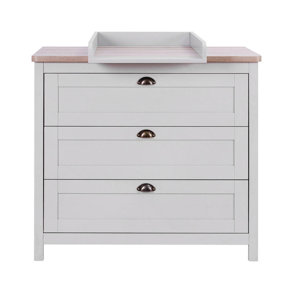 Transform your nursery with the multi-functional Tutti Bambini Verona Chest Changing Unit in stylish Grey and Oak. This premium piece seamlessly combines ample storage with a safe, convenient changing station, making it an essential investment for modern parents. Designed to grow with your child, the unit features a removable changing top, transitioning effortlessly into a classic chest of drawers for long-term use. The robust construction and sleek two-tone finish (contemporary grey and natural oak) ensure durability and timeless elegance that complements any home decor. With three spacious drawers, you gain essential organization for clothing, nappies, and essentials, helping you maintain a clutter-free and serene environment for your baby. Invest in the Verona Chest Changing Unit for safety, style, and superior functionality.
