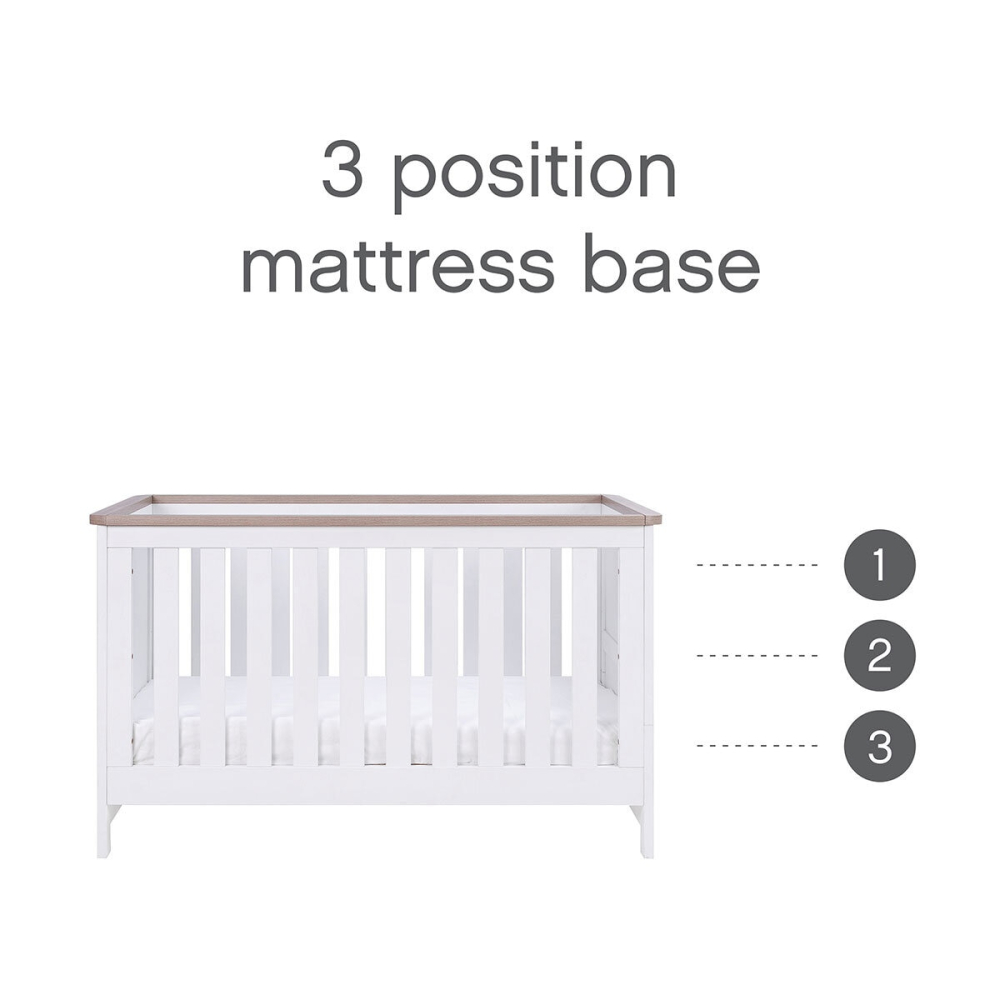 - Three Base Heights: Adjustable mattress height allows safe and easy access as your baby grows, protecting your back.