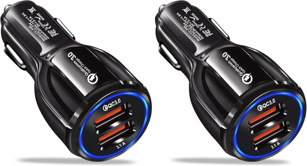10 reviews for USB Car Adaptor, 2 Port USB 3.0 Car Cigarette Lighter Phone Charger 30W 5A Fast Charging Compatible with iPhone Samsung Galaxy iPad Huawei – BK-348, Black