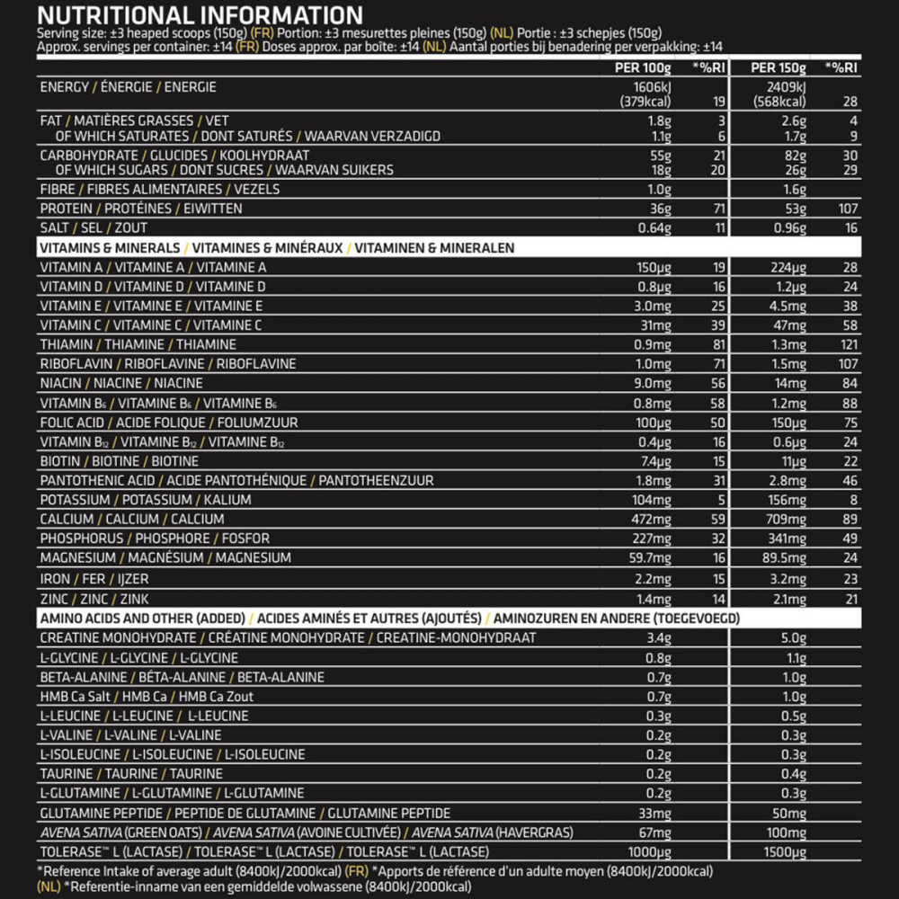 - Massive 54g of High-Quality Protein per serving for optimal muscle repair.