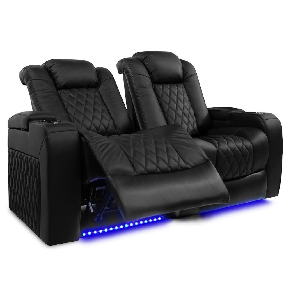 Dramatically upgrade your entertainment space with the Valencia Tuscany Black Leather Power Reclining Home Theatre Sofa. Designed for the ultimate in comfort, luxury, and functionality, this premium sofa features genuine top-grain black leather upholstery that delivers superior durability and a sophisticated aesthetic. Experience personalized relaxation with smooth, whisper-quiet power reclining mechanisms, allowing you to find your perfect viewing angle effortlessly. Built-in features like adjustable headrests, USB charging ports, and convenient storage consoles make this sofa the essential center piece for any high-end modern home cinema or dedicated media room. Invest in unmatched quality and style for years of comfortable viewing.