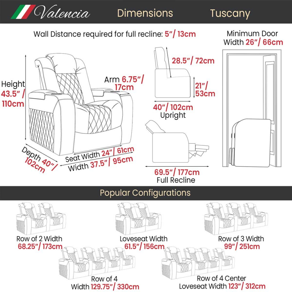 Transform your living space or dedicated media room into a luxurious, high-end private cinema with the magnificent Valencia Tuscany Row of 5 Brown Leather Power Reclining Home Theatre Seating. Designed for the ultimate movie enthusiast, this five-seat configuration offers unparalleled comfort, support, and sophisticated style. Upholstered in premium, rich brown genuine leather, these seats feature smooth, silent power reclining mechanisms, allowing everyone to find their perfect viewing angle at the touch of a button. The ergonomic design provides superior lumbar support, while included amenities like LED lighting, USB charging, and integrated tray tables ensure every convenience is within reach. Invest in the Valencia Tuscany seating to experience films, sports, and gaming like never before, creating memorable moments in ultimate luxury and comfort.