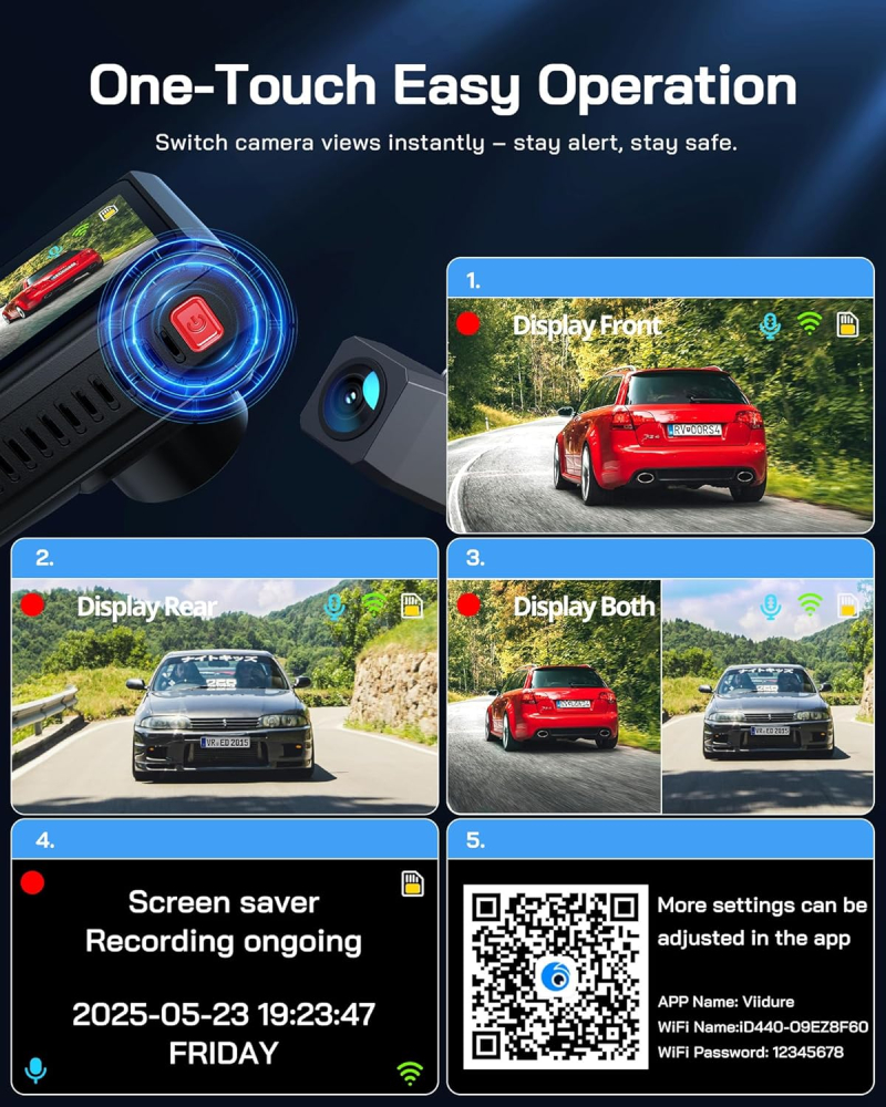• 🛡️ Advanced Vehicle Protection: Equipped with Parking Guard (requires optional Hardwire Kit), Motion Detection, and WDR function for comprehensive safety coverage.